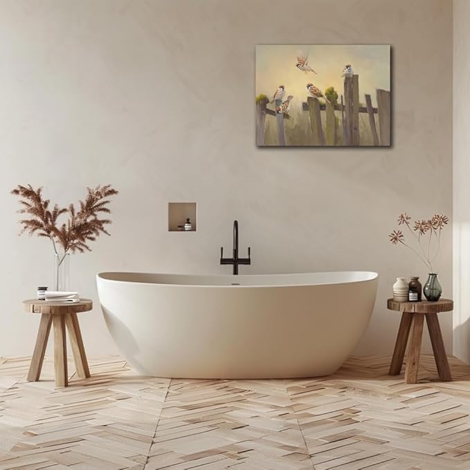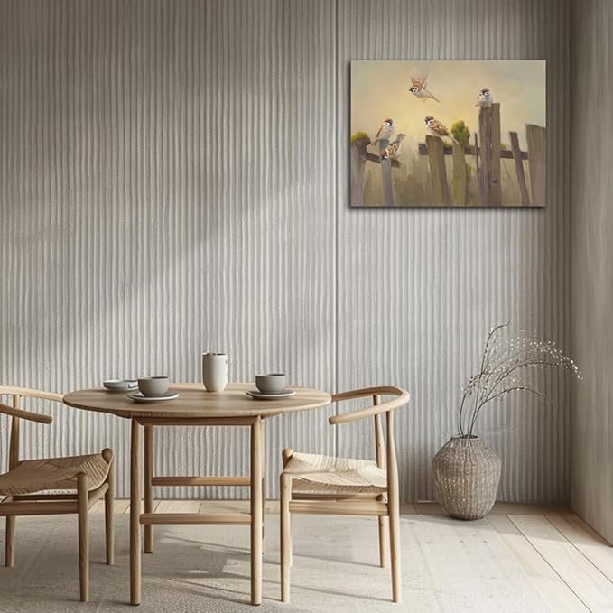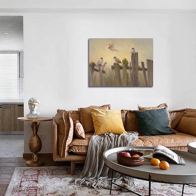 Bird Canvas Wall Art Birds Flying on The Wooden Fence Painting Decor Farmhouse Birds Art Print Pictures for Living Room Kitchen Home Office Decorations 24x32 inch