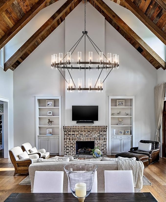 - [Easy to Install] Improved, this Wagon Wheel chandelier is easier to install, which is a DIY-friendly choice. The instruction manual explains in detail how to install it. This modern farmhouse chandelier can also be installed on flat, sloped or vaulted ceilings.