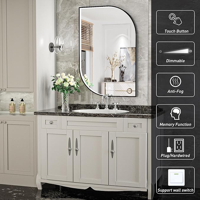 - 【Anti-Fog Function】LED Mirror built with a fast and safe defogging heater, it ensures a clear reflection while maintaining safety.The 1-hour auto shut-off energy-saving and adds peace of mind