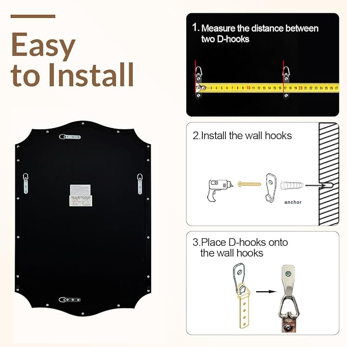 - 【Excellent Packaging & Easy Installation】: Our unique rectangle mirrors are in fully protected packaging with a PE bag, poly foam, and master box to ensure they arrive in perfect condition. Our wall-mounted mirrors pass the rigorous drop test and come with four pre-installed hooks, making it easy to install both horizontally or vertically