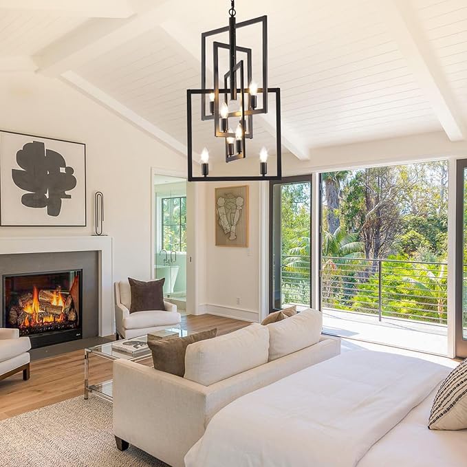 - ✨Perfect Design Style: This large foyer chandelier has a black geometric frame and a black central lamp base. It is the perfect complement to the lamps in your home. This entryway chandelier the perfect choice for you! More and more customers are picking this fixture for better comfort and to meet the new popular styles. This lantern pendant light requires no assembly. Very easy to use. Beautiful farmhouse chandelier for entryway is suitable for all decorating styles.