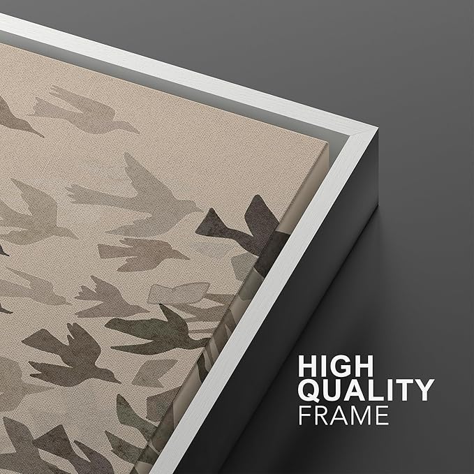 MUDECOR Framed Wall Art Print Set Minimalist Subtle Birds in Motion Illustrations Modern Art Boho Decorative Colorful Chic for Living Room, Bedroom, Office - 24"x36"x3 White