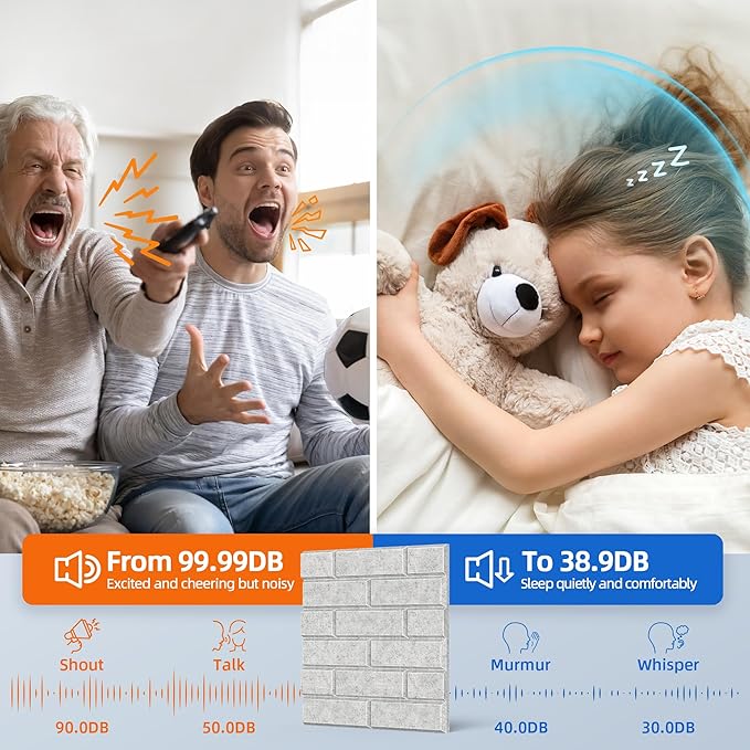- 🔇 Effective Noise Reduction: Design for tranquility, our wall soundproof foam panels are engineered with an exceptional NRC coefficient surpassing 0.95, they excel at absorbing diverse high and low-frequency noises, from bustling traffic to household chatter and blaring music. As you combine more panels, the noise gets weaker.