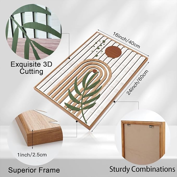 - 【Boho Mid century Wall Art】This mid-century modern abstract painting is the perfect combination of wood art and Boho style, combining sun,greenery and geometry elements for a cutting-edge and aesthetically pleasing visual experience. Hang it on the wall, break the boring empty wall, and add some colorful ideas to your room.