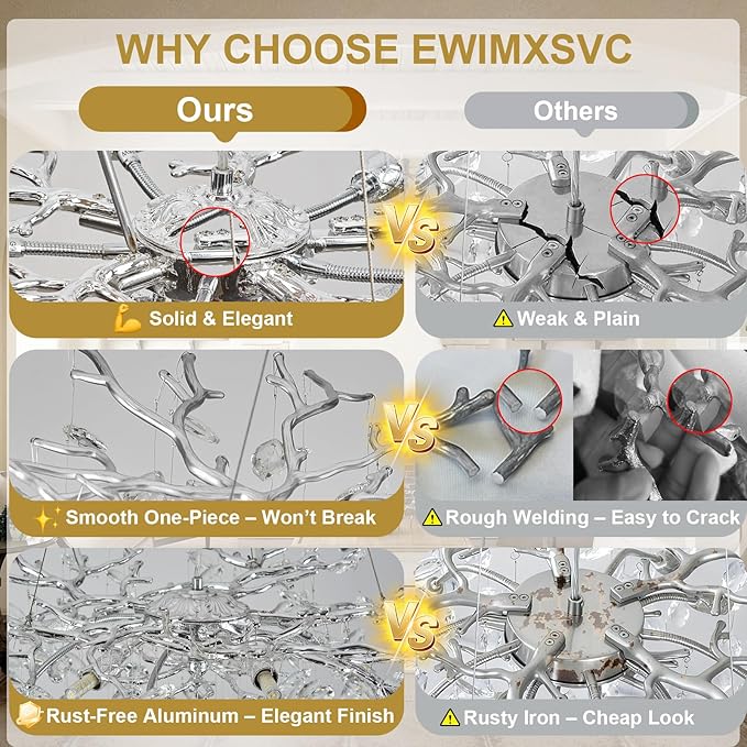 - 【Warranty Assurance】We’re confident you’ll fall in love with your entrance chandelier—so much so that we back it with a 5-year warranty. Plus, to give you even more peace of mind, we include an extra 5% of crystals to cover any potential loss or damage during shipping. If you ever run into any issues, like a crystal going missing, simply reach out! We’ve got you covered, so your silver chandelier stays the dazzling centerpiece of your home. You can focus on creating unforgettable memories beneath its glow!