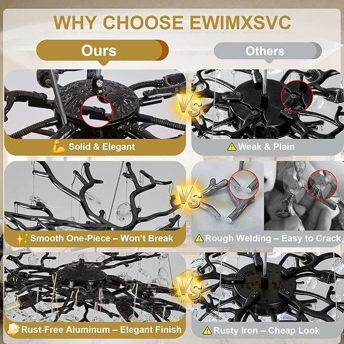 - 【Mood Lighting】Picture this: You’re entertaining guests and want to set the mood. Compatible with dimmable G9 bulbs (not included), this branch chandelier lets you customize the brightness to match your vibe—be it romantic, festive, or just plain fun. Enjoy dazzling black chandelier light fixture that transforms your space from ordinary to extraordinary!