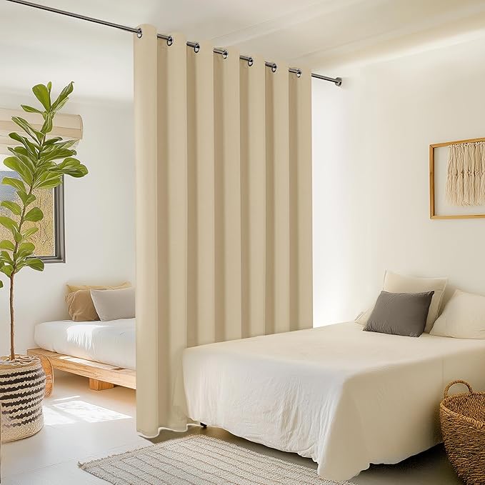 ChrisDowa Room Divider Curtain 90 Inches Long, Wide Blackout Sliding Door Curtain for Bedroom, Room Darkening Privacy Window Drape for Patio Door (1 Panel Set, Biscotti Beige, 100 x 90 Inch)