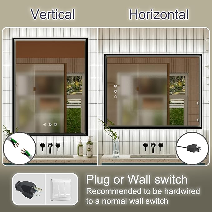- [Safety Anti Fog Function] The LED mirror is equipped with a built-in defogging heating film. After a few minutes of opening, the fog in the mirror will disperse from the center to both sides, ensuring clear reflection even in humid environments; Automatic shutdown after 1 hour of continuous use, safe and energy-saving