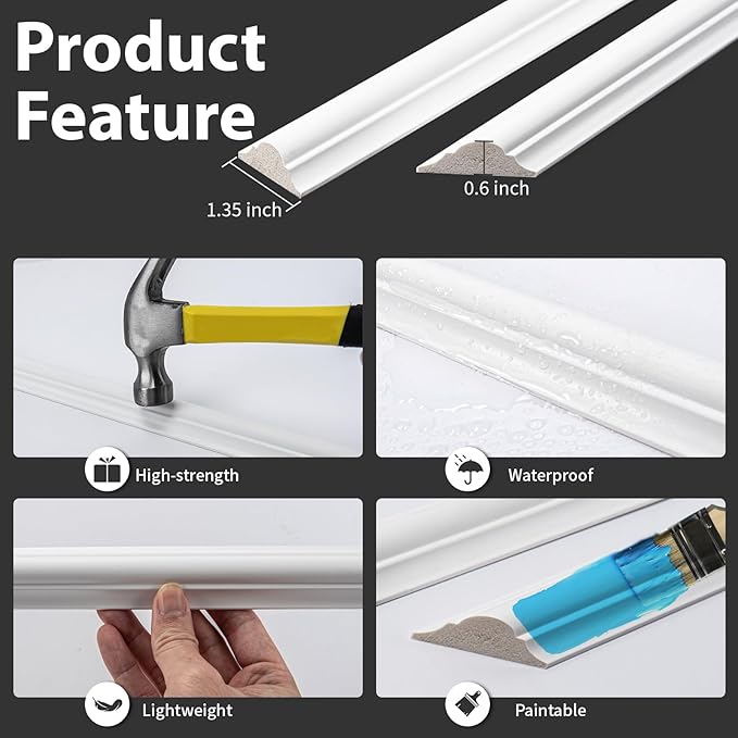 - Premium Polystyrene Material: High-density polystyrene resists moisture/warping, unlike bendable PVC. Holds sharp lines, accepts all paint types, and maintains crack-free durability.