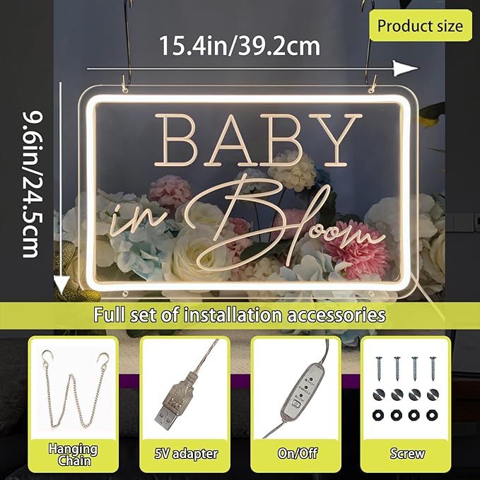 - 【Warm Tips】 - Baby in Bloom LED light sign you will receive will look just like the one shown in the picture. if you would like to adjust the color of the letter neon lamp sign or customize the design, just contact us. we will solve the problem for you as soon as possible until you are satisfied.