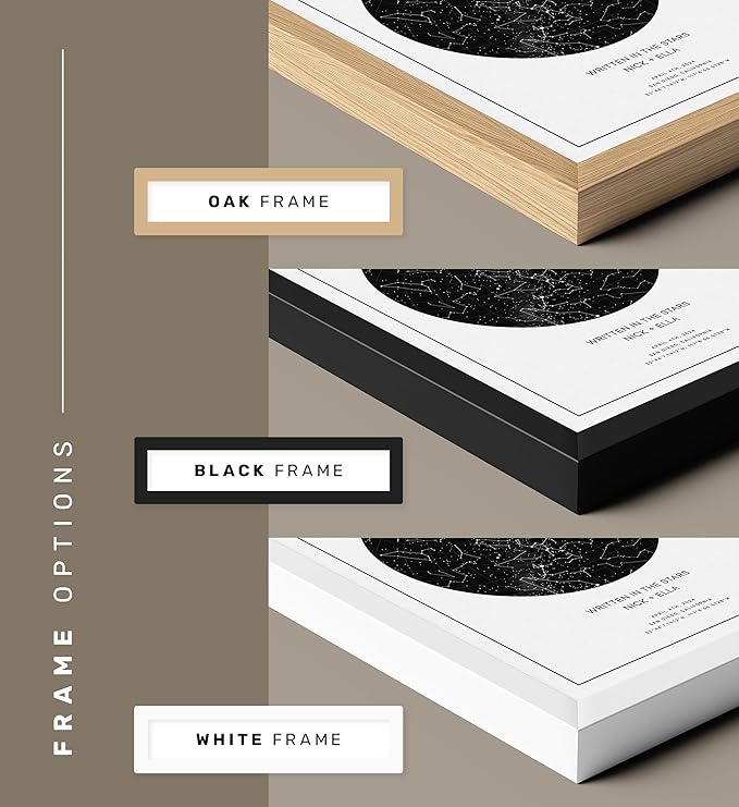 - CUSTOMIZABLE FEATURES ✦ Celestory star maps come in multiple sizes, color styles, and unframed / framed options to suit any aesthetic - making each custom print as unique as the moment it captures.