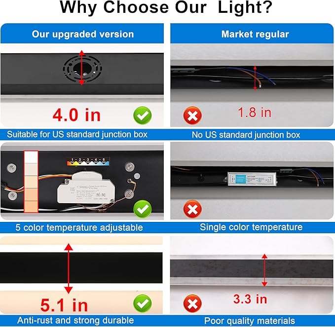 - 5 Color Temperature Adjustable: This outdoor long led wall sconce offers 5 different color temperatures (3000K/3500K/4500K/5000K/6000K) for you to create the perfect ambiance for any occasion. Simply preset your preferred light color with the DIP switch before installation