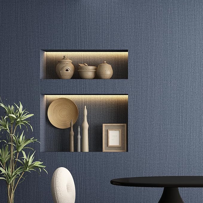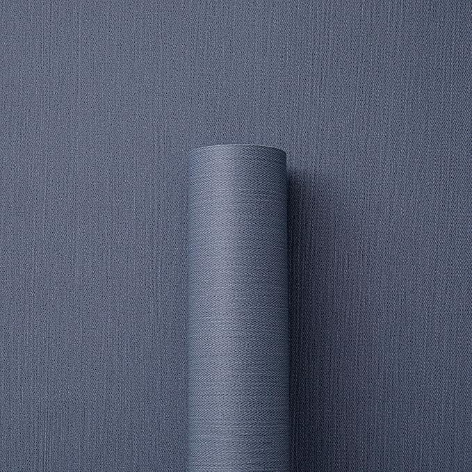 24"x393" Navy Blue Grasscloth Peel and Stick Fabric Textured Contact Paper Linen Popular Wallpaper Vintage Matte Frosted Waterproof Flax Wallpaper for Bedroom Bathroom Kitchen (Dark Blue)