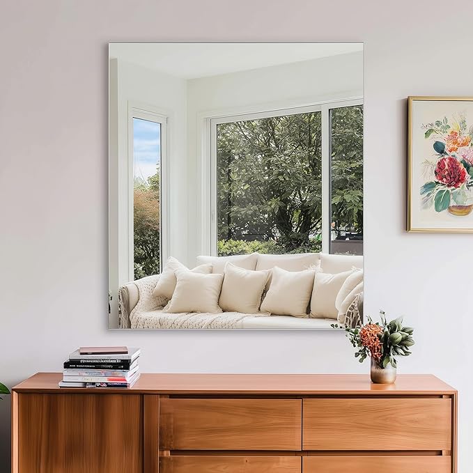 KOCUUY Frameless Mirror, 30"x30" Square Rectangle Bathroom Mirror for Over Sink, Upgraded Shatterproof Unframed Design for Bedroom, Living Room, Entryway