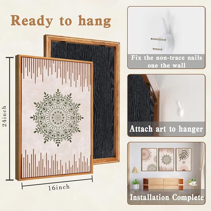 - 【Boho Wall Art】This set of boho- inspired wall art includes 3 framed pieces. Each canvas measures 16 x 24 inches, making it a great fit for various spaces like bedrooms, living rooms or offices.