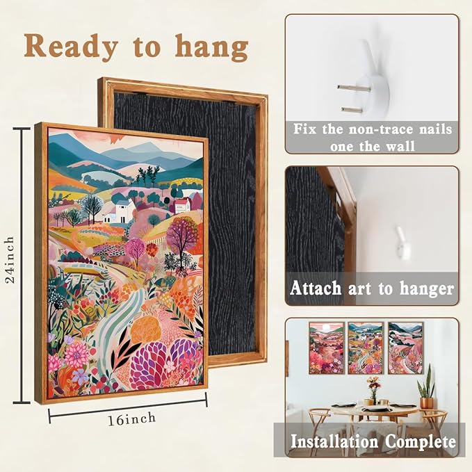 - 【Easy to Hang】The 16"x24" set is a breeze to install. Just pick a level spot, use the provided non - trace nails, and you can have it on the wall in about 5 minutes.