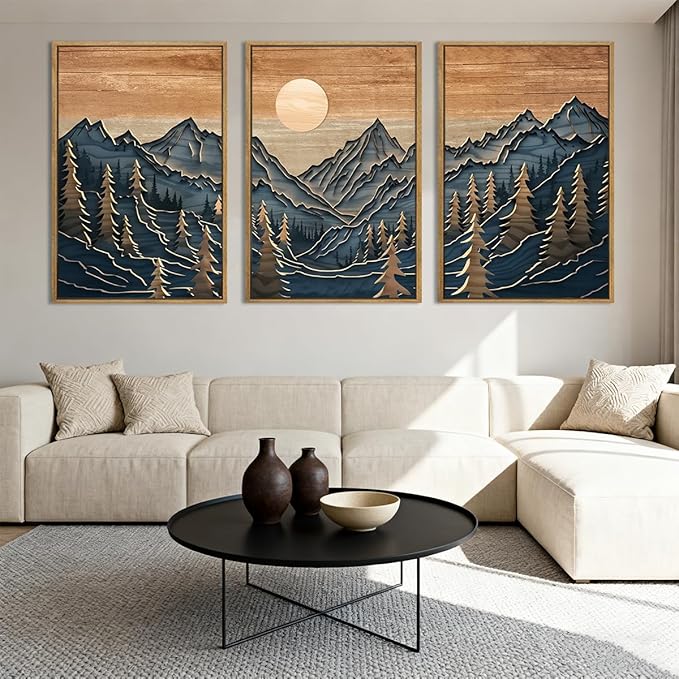 Anyzal Large Mountain Forest Wall Art Decor Framed Vintage Artwork Mid Century Modern Art Print for Living Room Bedroom Office 16x24 Inch Set of 3