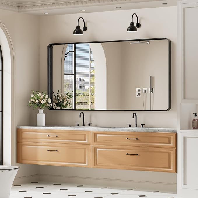 - 【Rust-Proof Deep Frame – Durable for Humid Areas】The matte metal finish resists moisture, corrosion, and chipping, while seamlessly welded rounded corners. Built to last with a scratch-resistant surface for decades that maintains a smooth appearance without warping or peeling, bathroom vanity mirror is ideal for high-humidity areas like bathrooms. The matte rust-resistant aluminum alloy deep frame not only enhances stability and adds a sleek decorative aesthetic.