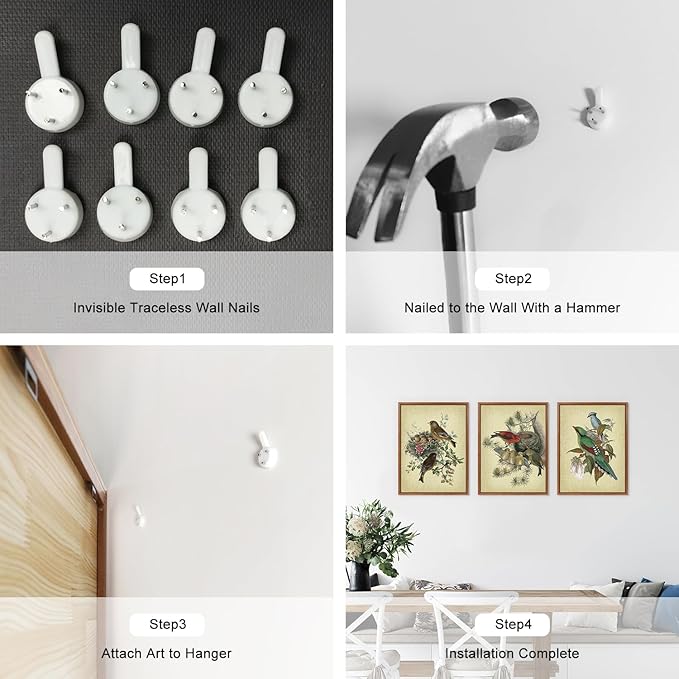- [Size] Your will get 3 piece birds wall art and each piece is measures 12x16inch(30X40cm) including the frames is 1inch(2.5cm)thick.The flexibility to arrange them together or separately allows you to create a personalized display that complements your style