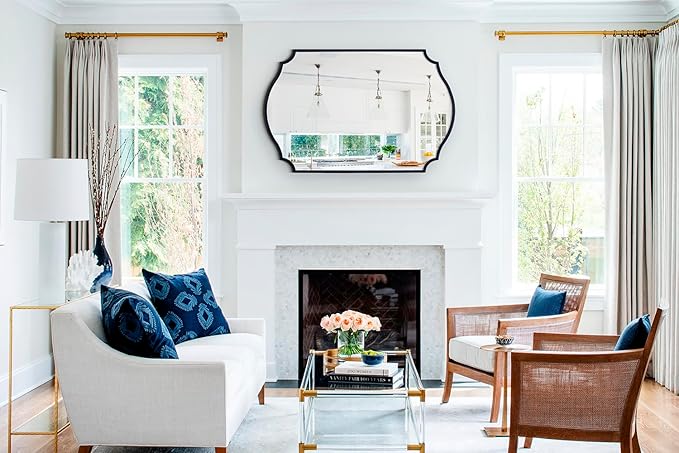 Chende Black Mirrors for Wall Decor, 36'' x 24'' Scalloped Mirror for Bathroom with Metal Frame, Large Wall Decor for Living Room, Entryway, Dining Room