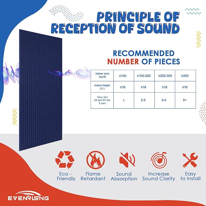 - đăECO MATERIALăSoundproof large acoustic sound panels are made of quality polyester fiber, which has a better sound proof effect than soundproofing foam panels; It features flame Retardant, wear resistance, and durability; Safe to breathe and touch, and it's safe for adults, kids.