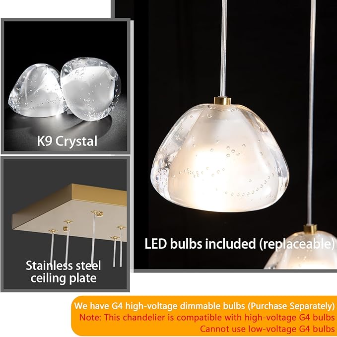 - 【Energy Saving LED Light】This crystal chandelier, with a 120W power draw, offers 9600 lumen brightness at 3000K color temperature, covering AC110-240V inputs