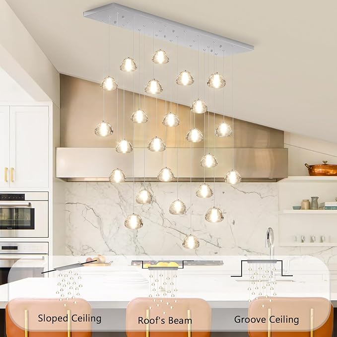 - 【Adjustable Height Hanging Light】Canopy: W47.2" x L11.8" x H2". Canopy ceiling light has adjustable wires from 3.9 to 138 inches, adaptable for high/low ceilings and suitable for flat or sloping roofs, indoors.Weight: 54 lbs