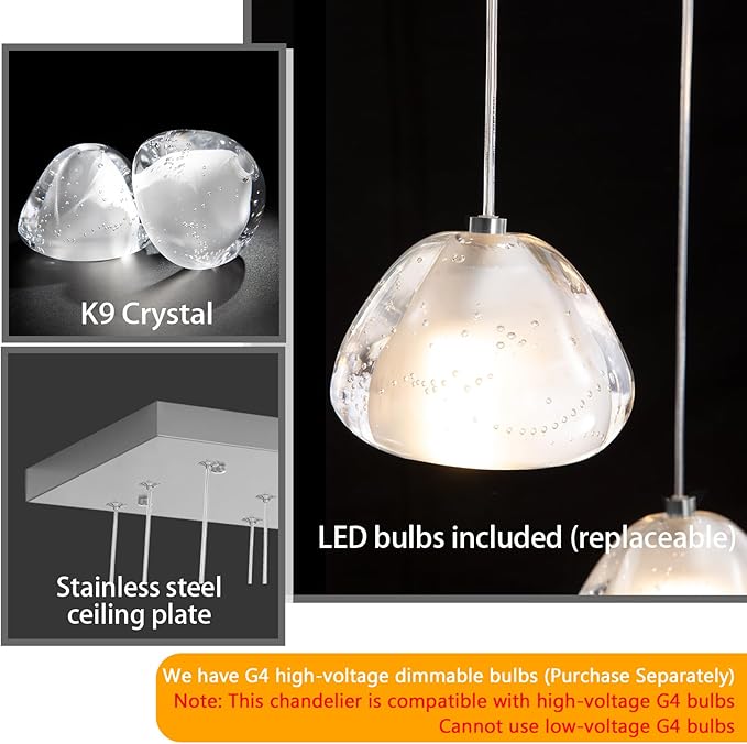 - 【Rectangular Crystal Chandelier】This LED light, made of high-quality stainless steel and K9 crystal, brings beautiful lighting and a warm atmosphere to your room