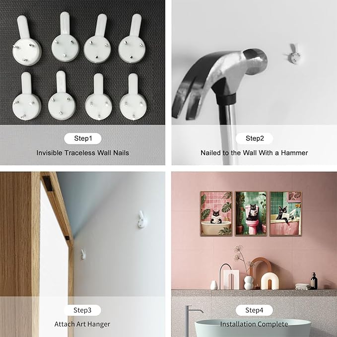 - EFFORTLESS TO DISPLAY: The framed funny bathroom wall art set includes three pieces, each measuring 16×24 inches (40×60cm). We provide a complete hanging kit, making it easy for you to hang the artwork when it arrives. Simply measure your wall space and effortlessly display the art.