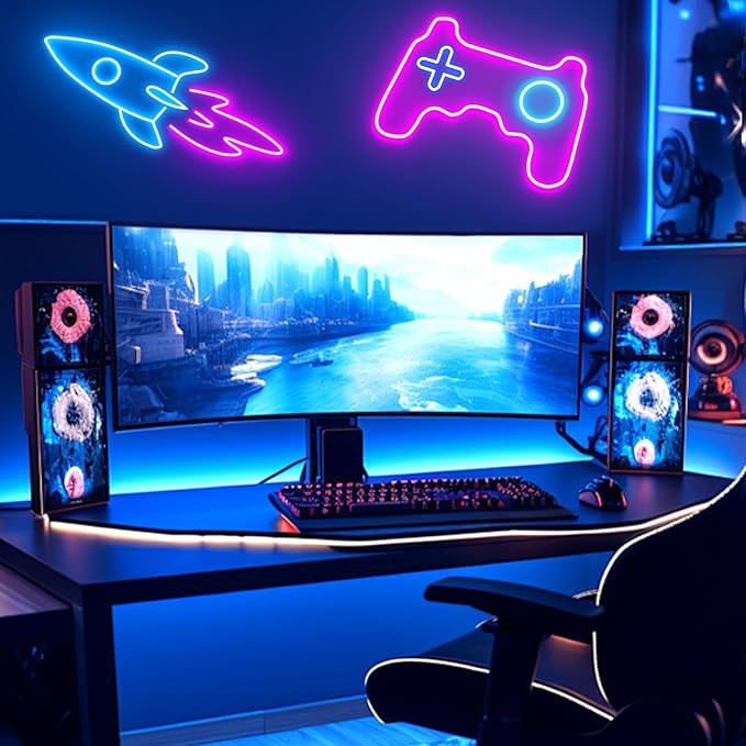 - Elevate your gaming room decor with our Neon Gaming Lights! Our flexible neon LED strip lights With 16 million colors to choose from and individual scene mode, music mode let the light and frequency change according to the surrounding sound. Perfect for gamers and streamers alike, these flexible neon lights offer complete customization to suit your style. Notes: 1.power supply controller is not waterproof
