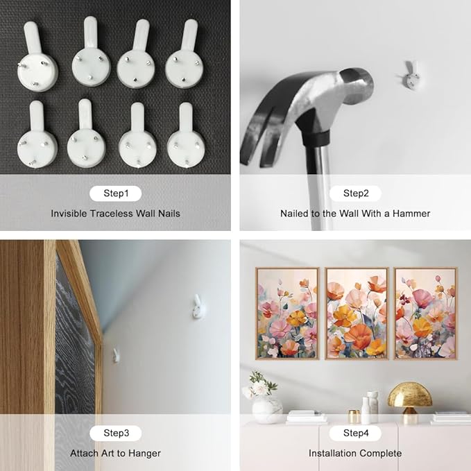 - 【Easy To Hang】The framed picture set of 16"x24" is easy to hang, ready to hang, it is finished with metal hooks and non-trace nails. It will only take about 5 minutes for you to hang it up.