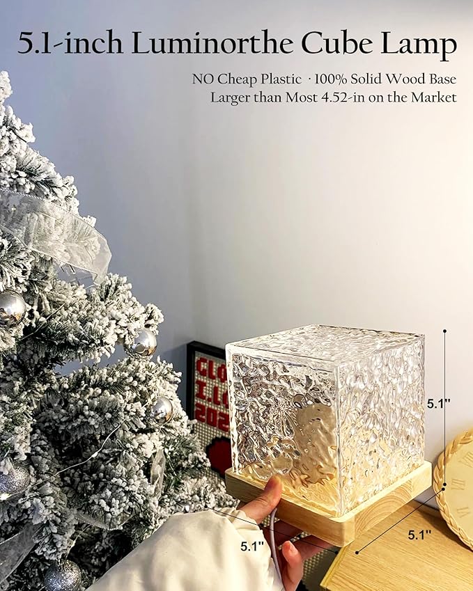 - Wooden Base & Crystal Shade : Our 5.1-inch luminorthe cube lamp made of real-wood base and acrylic shade with smooth edge line.Simple and square design makes it perfectly placed in any home corner,an elegant lamp for decorating room and taking pictures