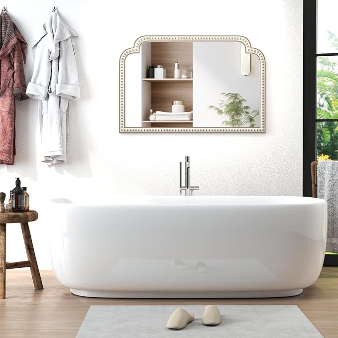 36''x24'' Farmhouse Wood Decorative Wall Mirrors with Beads, Boho Large Wide Arch Mirror for Living Room, Bedroom, Entryway, Fireplace