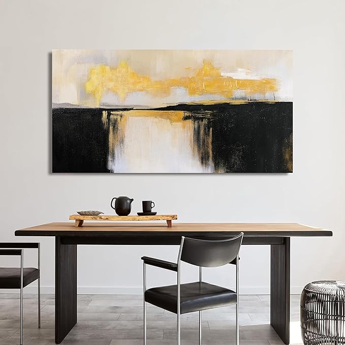 Canvas Wall Art Decor Black and White Wall Art Pictures For Living Room Black and Gold Wall Art Decor Abstract Art Work Modern Abstract Wall Art Prints for Bedroom Office Kitchen Wall Decor 24" x 48"