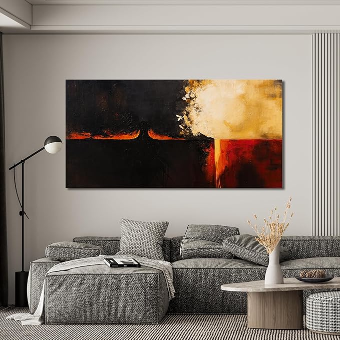 Canvas Wall Art Decor Wall Art Pictures For Living Room Black Red Vintage Wall Art Decor Abstract Art Work Decoration Modern Abstract Wall Art Prints For Bedroom Office Kitchen Wall Decor 24" x 48"