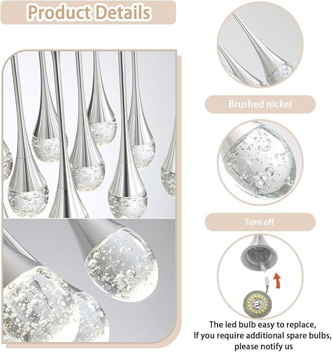 - 【Crystal Teardrop Chandelier Design】 : Absolutely beautiful,elegant style K9 bubble crystal and hardware pendant light.In addition to its beautiful shape,it is suitable for entryways,staircases,hallways, foyers,hotels,and apartments.