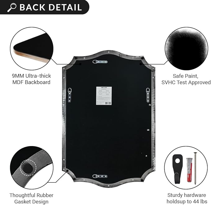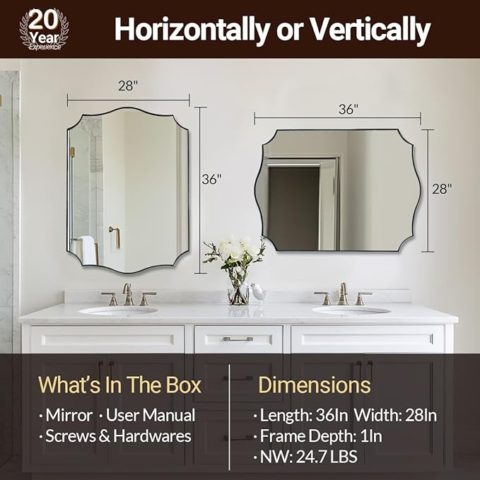 - 【Excellent Packaging & Easy Installation】: This asymmetrical mirror is in fully protected packing with a PE bag, poly foam, and master box to ensure they arrive in perfect condition. Our wall-mounted mirrors pass the 10-point drop test and come with four pre-installed hooks making it easy to install both horizontally or vertically