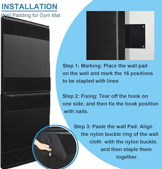 - Easy to Clean and Install: When installing, simply fix one end of the hook structure patch to the wall, align it with the circular structure of the wall pad, and then staple it on. You can use nails to firmly fix the wall mat to the wall. In addition, this wall protection pad also features a zipper design, and the inner and outer layers can be separated for easy cleaning. The outer leather can be cleaned with a damp cloth, and the inner liner can be washed with water