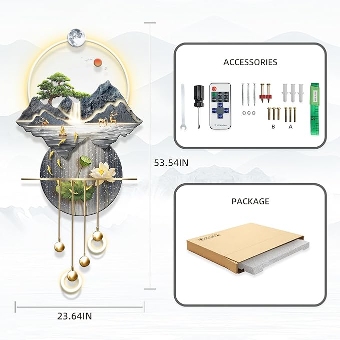 - Art decor That Means Something: Featuring iconic elements like majestic mountains, peaceful rivers, and graceful wildlife, this modern wall sculptures led light, symbolizes harmony, peace, and our connection to nature. It’s more than decor — it’s a meaningful centerpiece that **sparks reflection and conversation.
