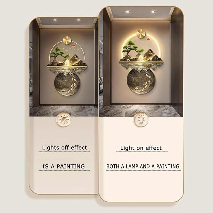 DLYZAYE 3D Wall Art Decor Wall Sculptures Wall Hanging Art with Led Light Wall Art Decorations Lamp Oriental Decor Traditional Chinese Wall Hanging Painting~/
