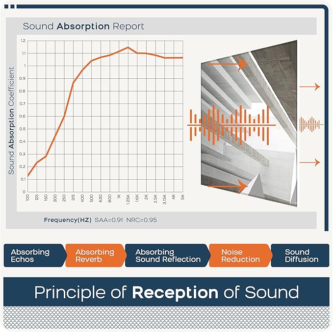 - š»ćSound Absorbingć Our art acoustic panels which can easily and effectively reduce reverberation diffusion and echo, absorbing noise for walls. Effectively improve your sound environment and quality.Absorption Frequency: 150-20000HZ.It has better effect than acoustic foam