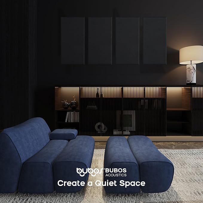 BUBOS 4 PCS Acoustic Panels,23.6''x11.8'' Fabric Soundproof Wall Panels,Self-adhesive Sound Absorbing Panels for Studios, Office, Home Theater,Fabric-Clad Black