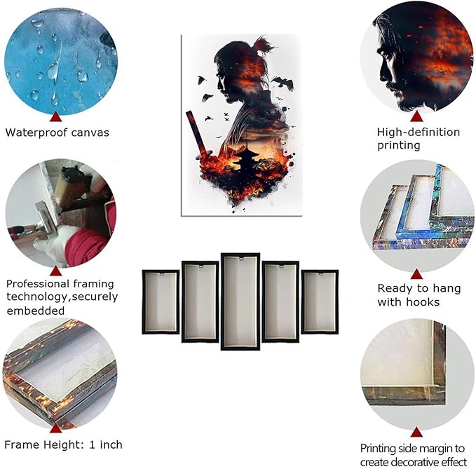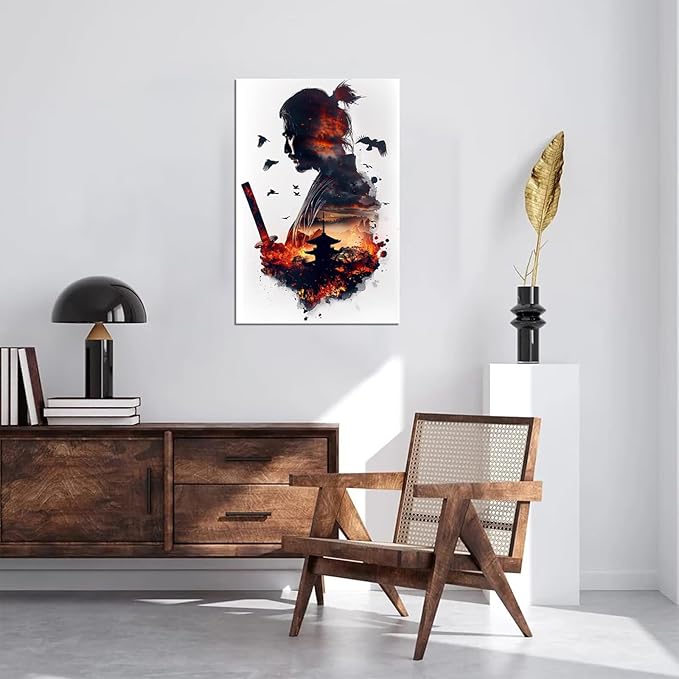 - [Japanese Samurai Canvas Wall Art Size] 12 X 16 Inch. Samurai wall art with japanese culture ancient character, uniquely of samurai portraits, if you are japanese art lovers you will like it!