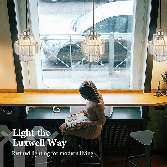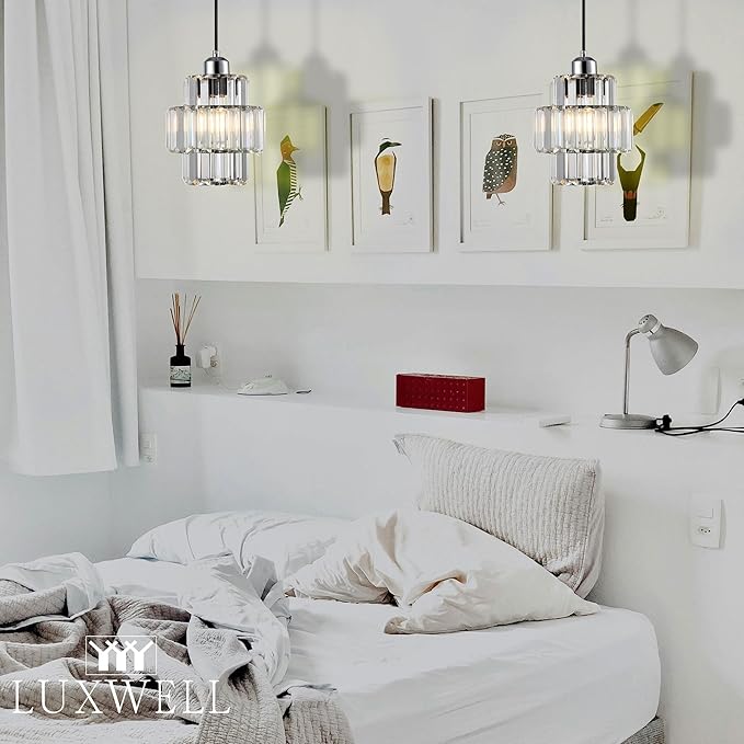Modern Crystal Chandelier, 6"x7" Classic Crafted Pendant Light, Glass & Metal Hanging Light for Innovative Small Space Use in Dining Room, Kitchen Island, Bedroom, Living Room - Luminous