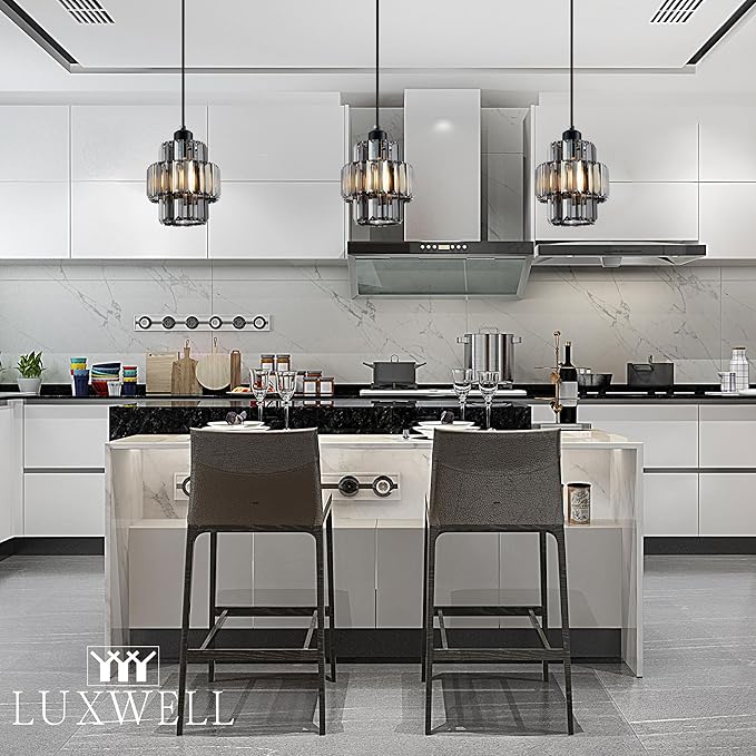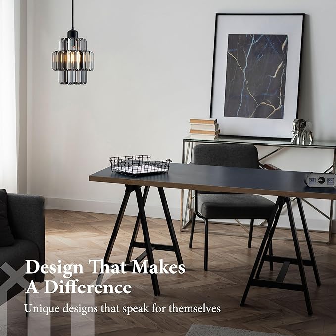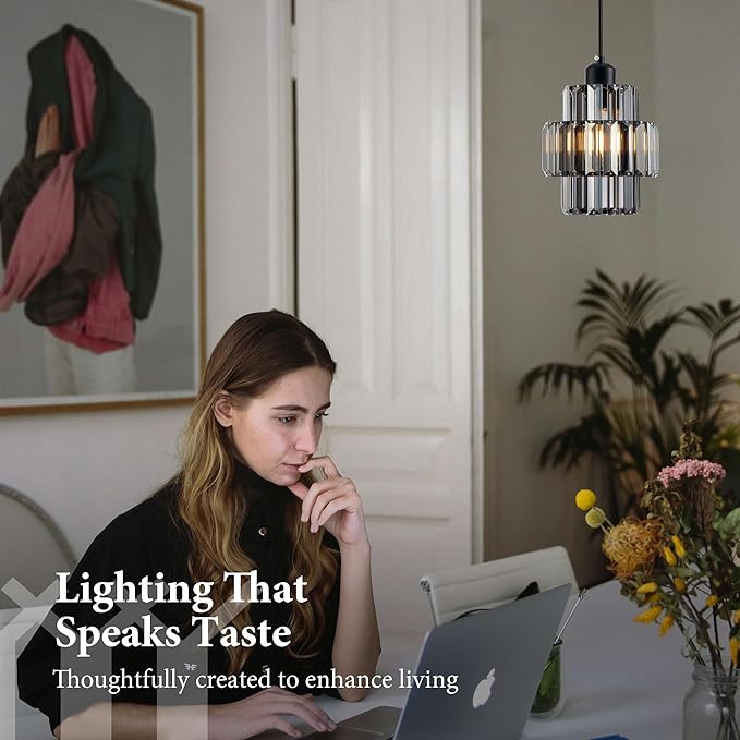 Modern Crystal Chandelier, 6"x7" Classic Crafted Pendant Light, Glass & Metal Hanging Light Innovative Small Space Use in Dining Room, Kitchen Island, Bedroom, Living Room - Midnight Fog