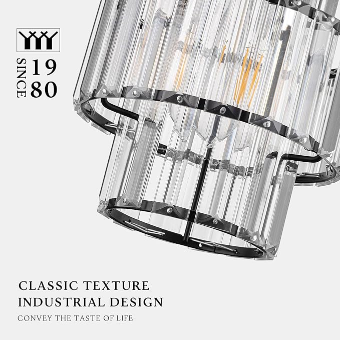 - 【Bold and Sophisticated Design】The deep, dramatic Obsidian finish brings a bold, modern edge to this chandelier pendant light. Combining high-clarity glass with strong metal accents, it makes a striking statement while blending seamlessly into industrial, minimalist, and modern luxury interiors.
