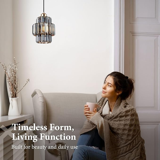 Modern Crystal Chandelier, 6"x7" Classic Crafted Pendant Light, Glass & Metal Hanging Light for Innovative Small Space Use in Dining Room, Kitchen Island, Bedroom, Living Room-Golden Mist