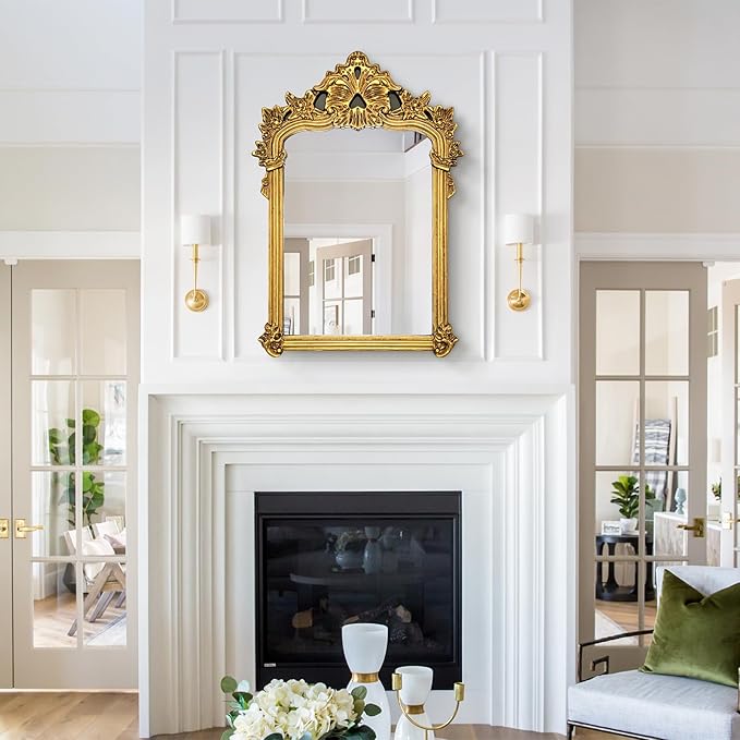 Baroque Vintage Mirror with Gold Arch Frame, Antique Ornate Mirror for Wall Decor, 21.7'' x 31.5'' Gold Wall Decor for Entryway, Fireplace, Living Room, Bathroom