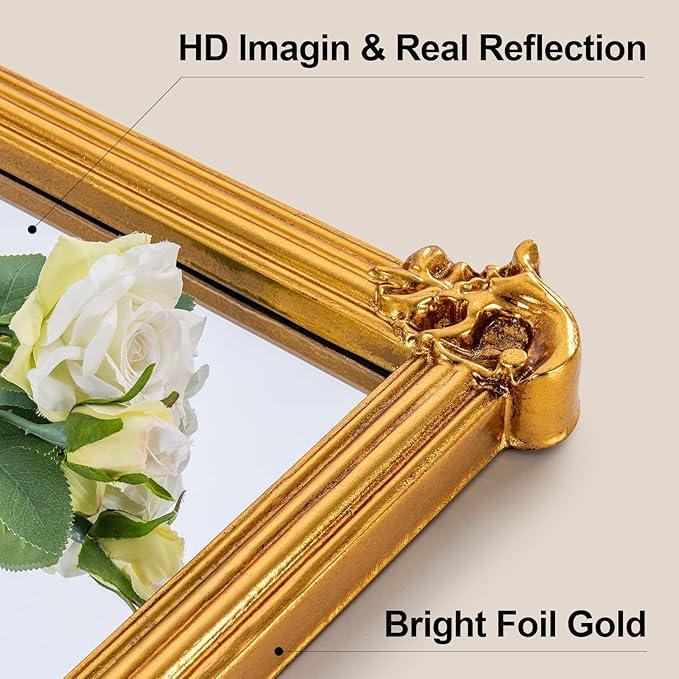 - 【Vintage Ornate Mirror Frame】The wall mirror features an ornate baroque style frame, carved elegant wreath overlay and arch, evoking some traditional charm to your home decor. Makes an elegant centerpiece
