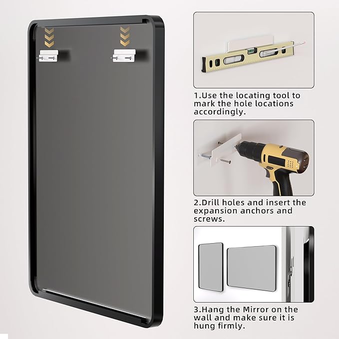 - Versatile Mounting Options - Designed for both vertical and horizontal installation, this wall mounted mirror adapts to various settings, whether in bathrooms, bedrooms, entryways, or living rooms. All necessary mounting hardware is included for easy setup.